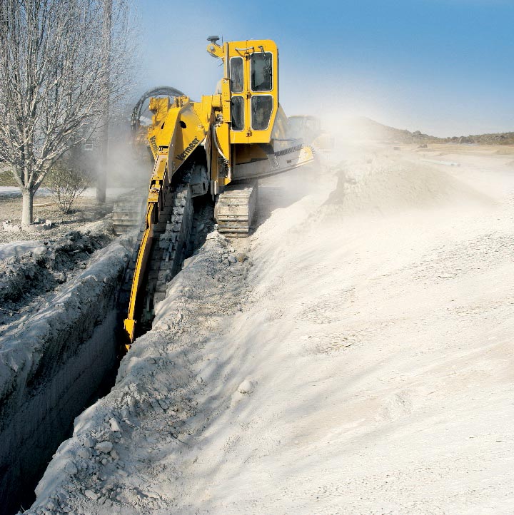 I trencher con disco o con braccio di scavo permettono di posare tubazioni in modo molto più rapido e preciso rispetto a un tradizionale sistema di scavo a cielo aperto.